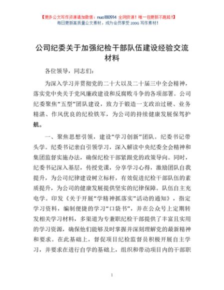/ 公司纪委关于加强纪检干部队伍建设经验交流材料