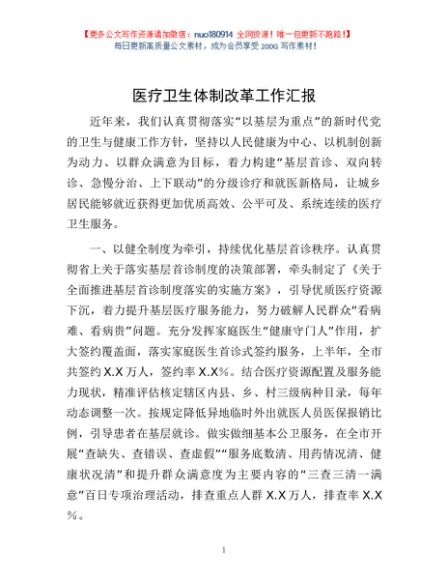 / 医疗卫生体制改革工作汇报