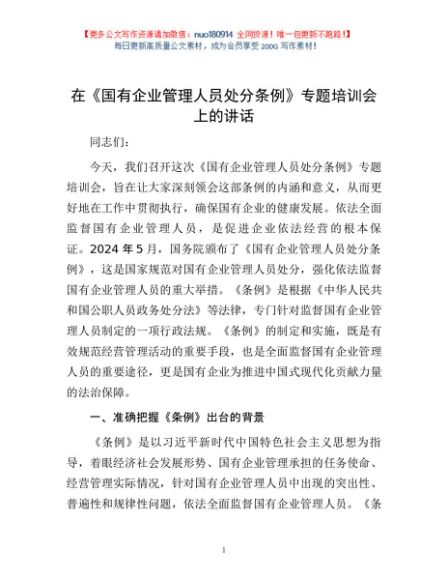 / 在《国有企业管理人员处分条例》专题培训会上的讲话