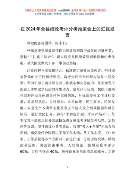 / 在2024年全县绩效考评分析推进会上的汇报发言