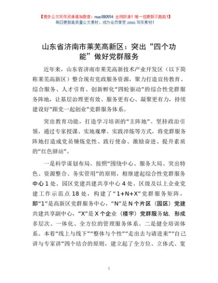 / 山东省济南市莱芜高新区:突出“四个功能”做好党群服务
