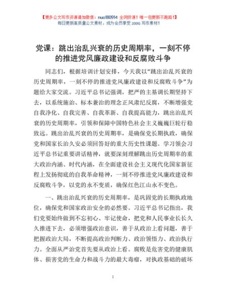 / 党课:跳出治乱兴衰的历史周期率,一刻不停的推进党风廉政建设和反腐败斗争