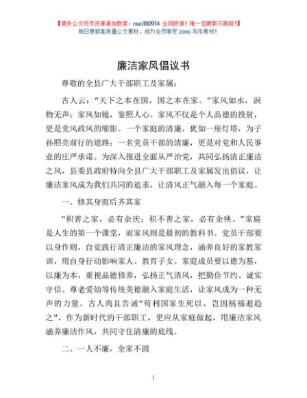 / 廉洁家风倡议书