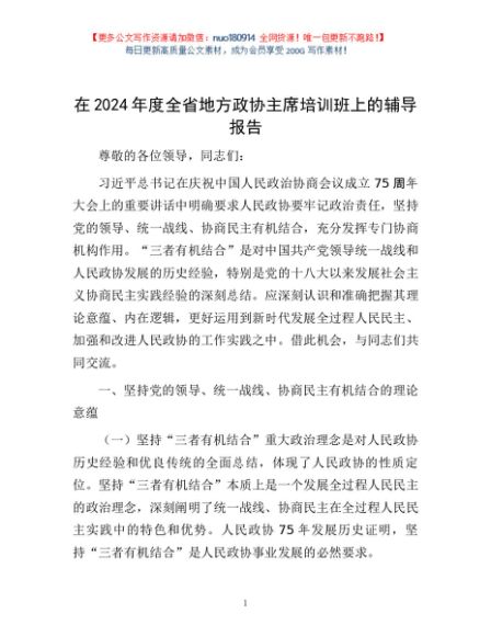 / 在2024年度全省地方政协主席培训班上的辅导报告