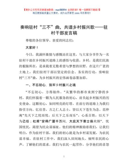 奏响驻村“三不”曲,共谱乡村振兴歌——驻村干部发言稿