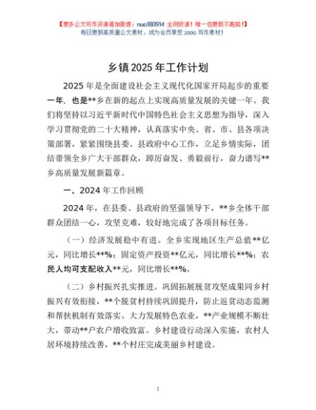 / 乡镇2025年工作计划
