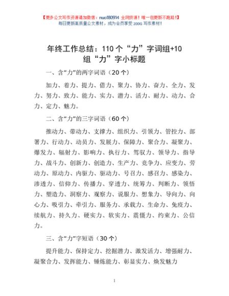 / 年终工作总结:110个“力”字词组+10组“力”字小标题
