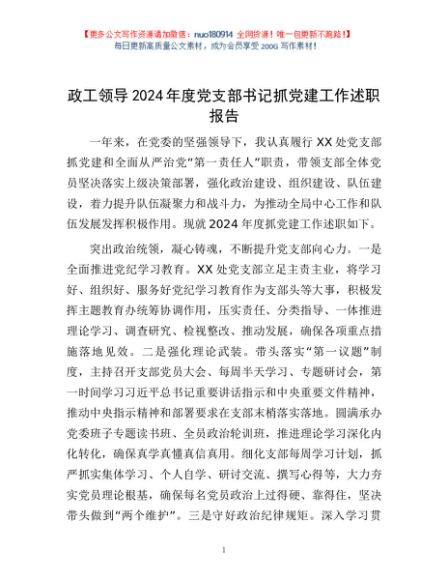 / 政工领导2024年度党支部书记抓党建工作述职报告