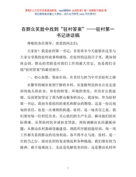 / 在群众笑脸中找到“驻村答案”——驻村第一书记讲话稿