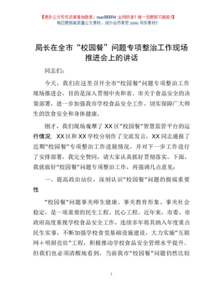 / 局长在全市“校园餐”问题专项整治工作现场推进会上的讲话