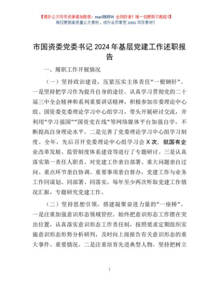 / 市国资委党委书记2024年基层党建工作述职报告