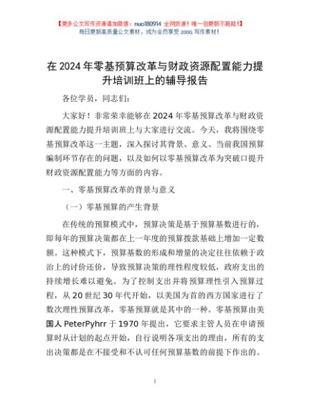 / 在2024年零基预算改革与财政资源配置能力提升培训班上的辅导报告