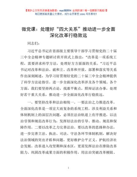/ 微党课:处理好“四大关系” 推动进一步全面深化改革行稳致远