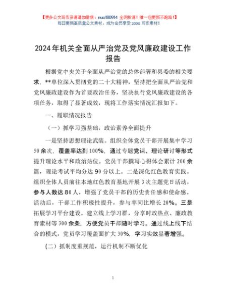 / 2024年机关全面从严治党及党风廉政建设工作报告