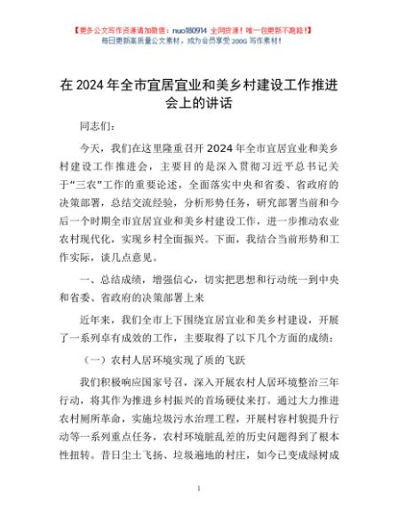/ 在2024年全市宜居宜业和美乡村建设工作推进会上的讲话