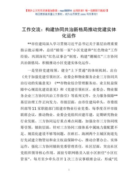 工作交流:构建协同共治新格局推动党建实体化运作