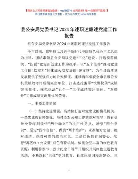/ 县公安局党委书记2024年述职述廉述党建工作报告