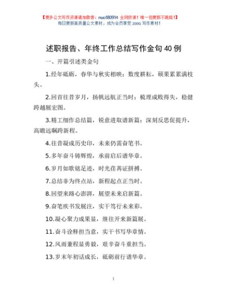 / 述职报告、年终工作总结写作金句40例