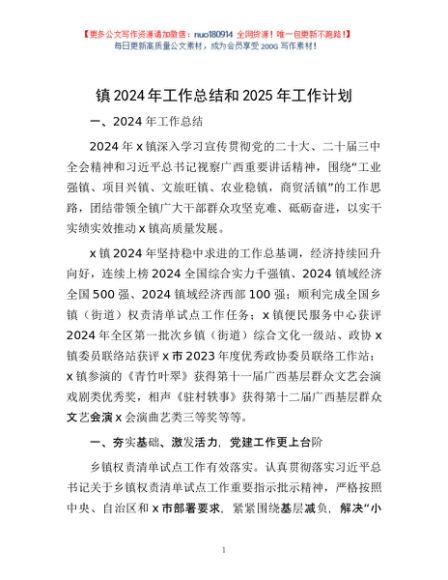 / 镇2024年工作总结和2025年工作计划