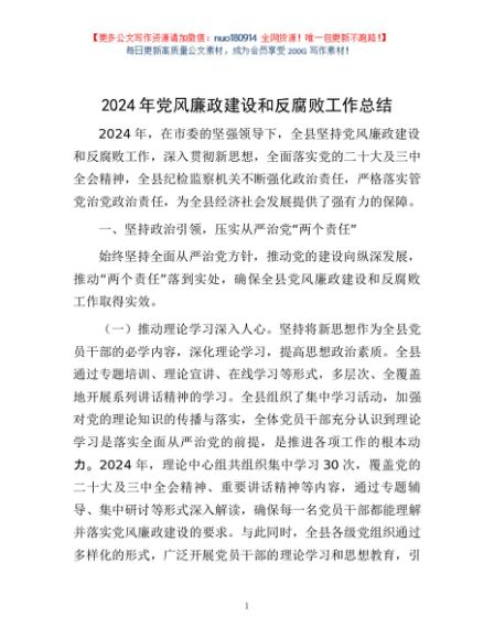 2024年党风廉政建设和反腐败工作总结