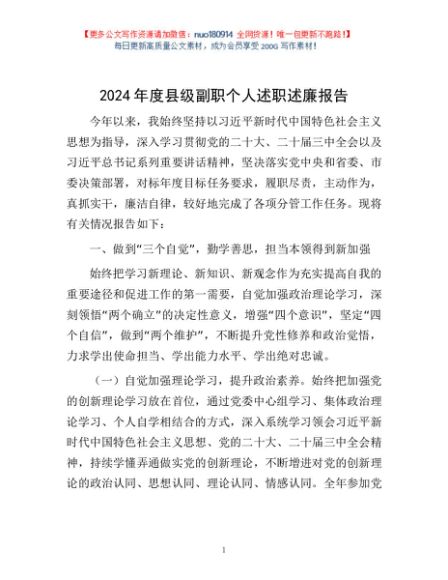 / 2024年度县级副职个人述职述廉报告
