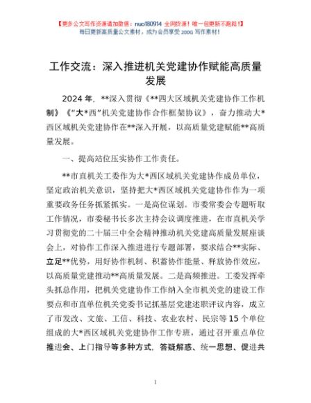 / 工作交流:深入推进机关党建协作赋能高质量发展