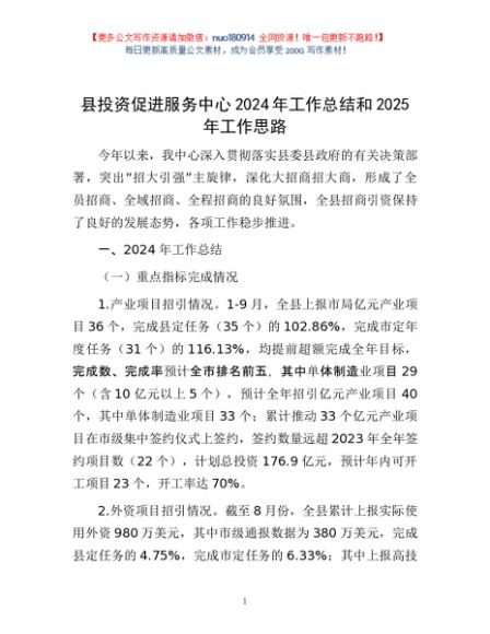 / 县投资促进服务中心2024年工作总结和2025年工作思路