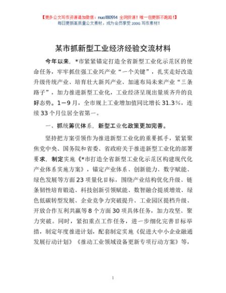 / 某市抓新型工业经济经验交流材料