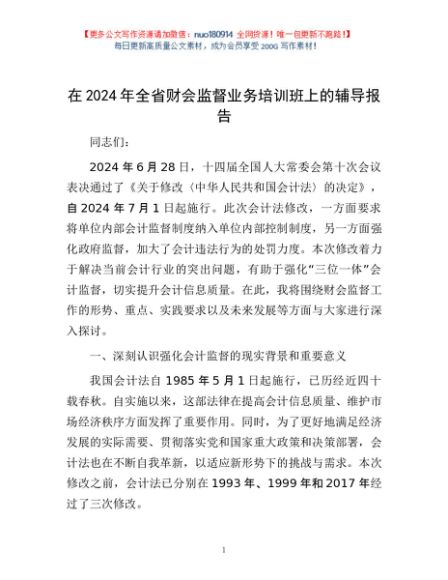 / 在2024年全省财会监督业务培训班上的辅导报告