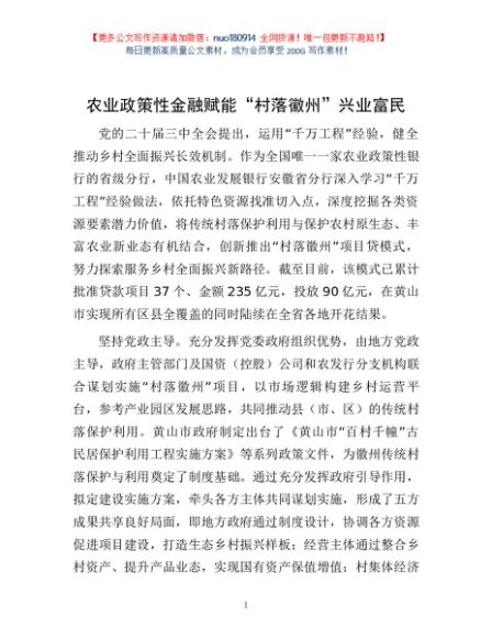 / 农业政策性金融赋能“村落徽州”兴业富民