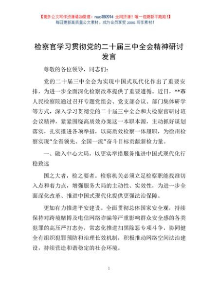 / 检察官学习贯彻党的二十届三中全会精神研讨发言