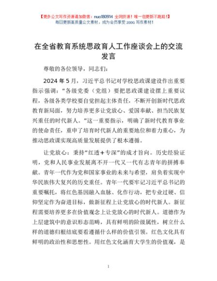/ 在全省教育系统思政育人工作座谈会上的交流发言