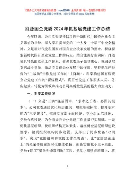 / 能源国企党委2024年抓基层党建工作总结
