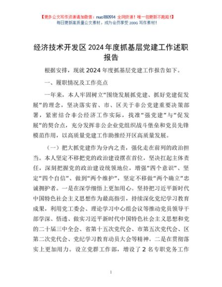 / 经济技术开发区2024年度抓基层党建工作述职报告