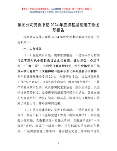 / 集团公司党委书记2024年度抓基层党建工作述职报告