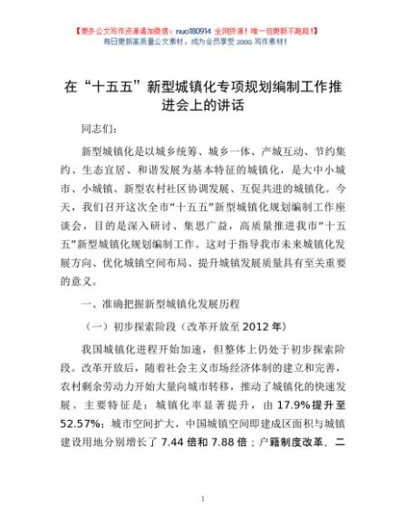 / 在“十五五”新型城镇化专项规划编制工作推进会上的讲话