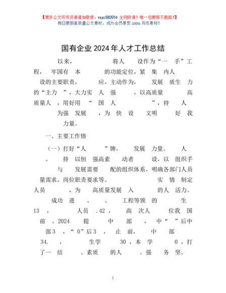 / 国有企业2024年人才工作总结