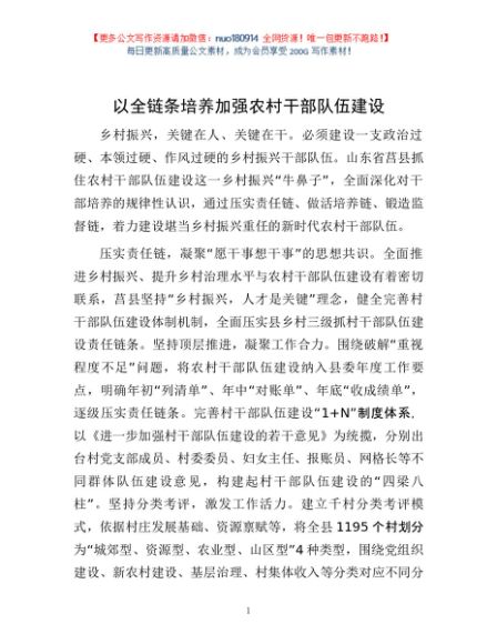 / 以全链条培养加强农村干部队伍建设