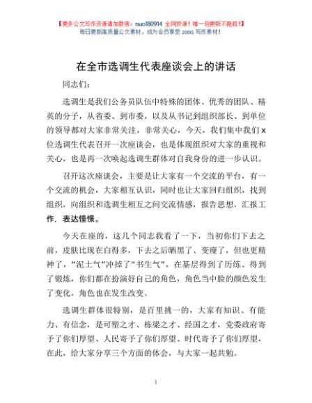 / 在全市选调生代表座谈会上的讲话