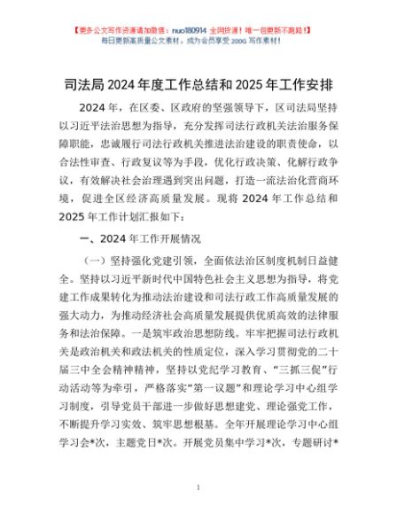/ 司法局2024年度工作总结和2025年工作安排