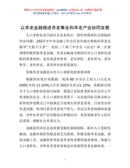 / 以养老金融推进养老事业和养老产业协同发展