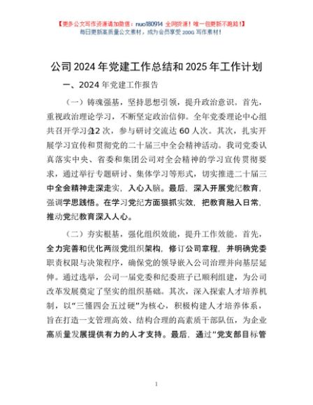 / 公司2024年党建工作总结和2025年工作计划