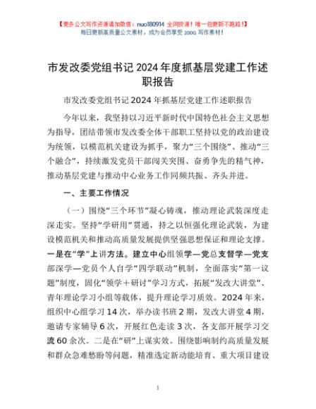 / 市发改委党组书记2024年度抓基层党建工作述职报告
