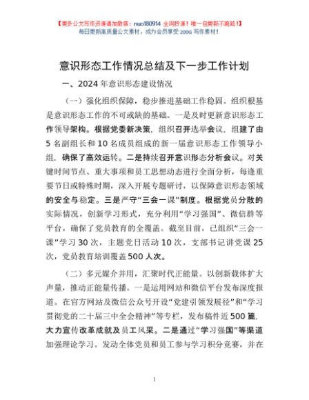 / 意识形态工作情况总结及下一步工作计划