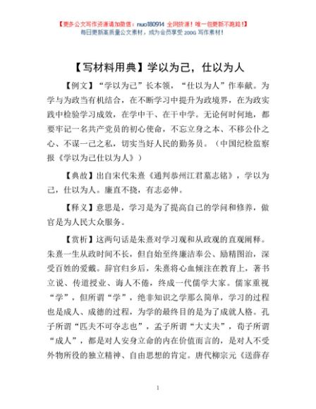 【写材料用典】学以为己,仕以为人