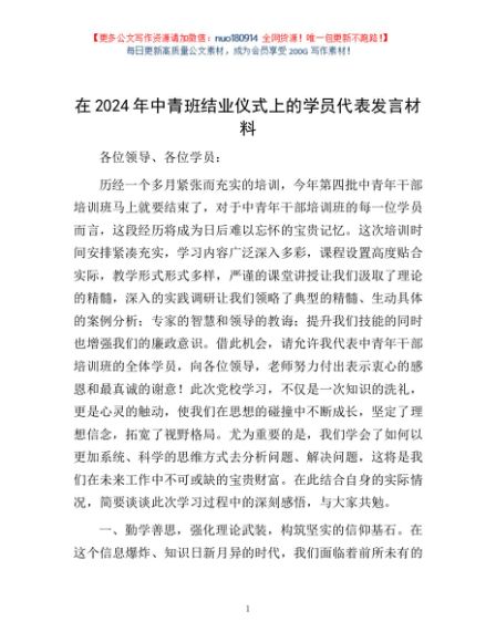 / 在2024年中青班结业仪式上的学员代表发言材料