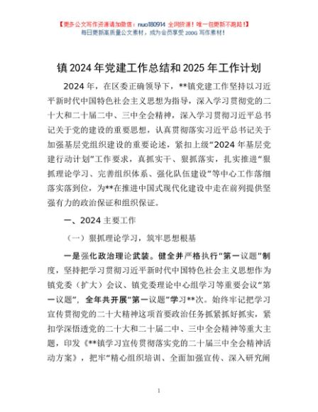 / 镇2024年党建工作总结和2025年工作计划