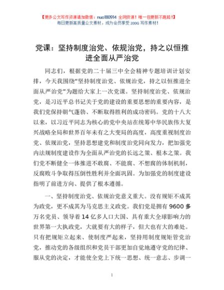 / 党课:坚持制度治党、依规治党,持之以恒推进全面从严治党