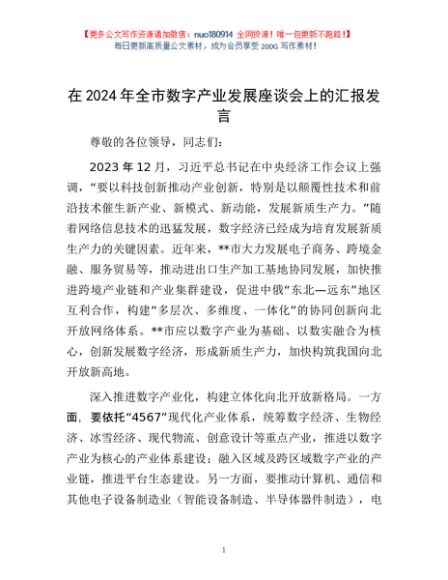 / 在2024年全市数字产业发展座谈会上的汇报发言