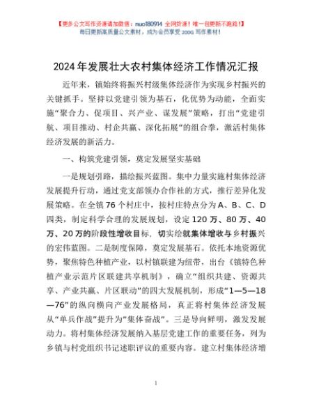 / 2024年发展壮大农村集体经济工作情况汇报